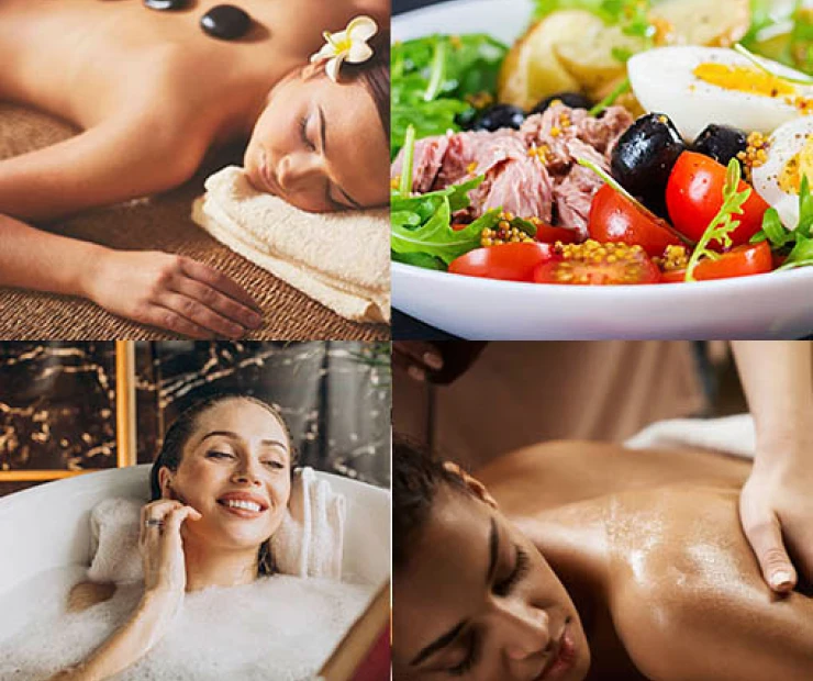 Esfoliação corporal, argiloterapia corporal, banho de imersão, hidratação corporal, massagem relaxante , almoço, escalda pés com massagem podal, revitalização facial Protocolo ADCOS